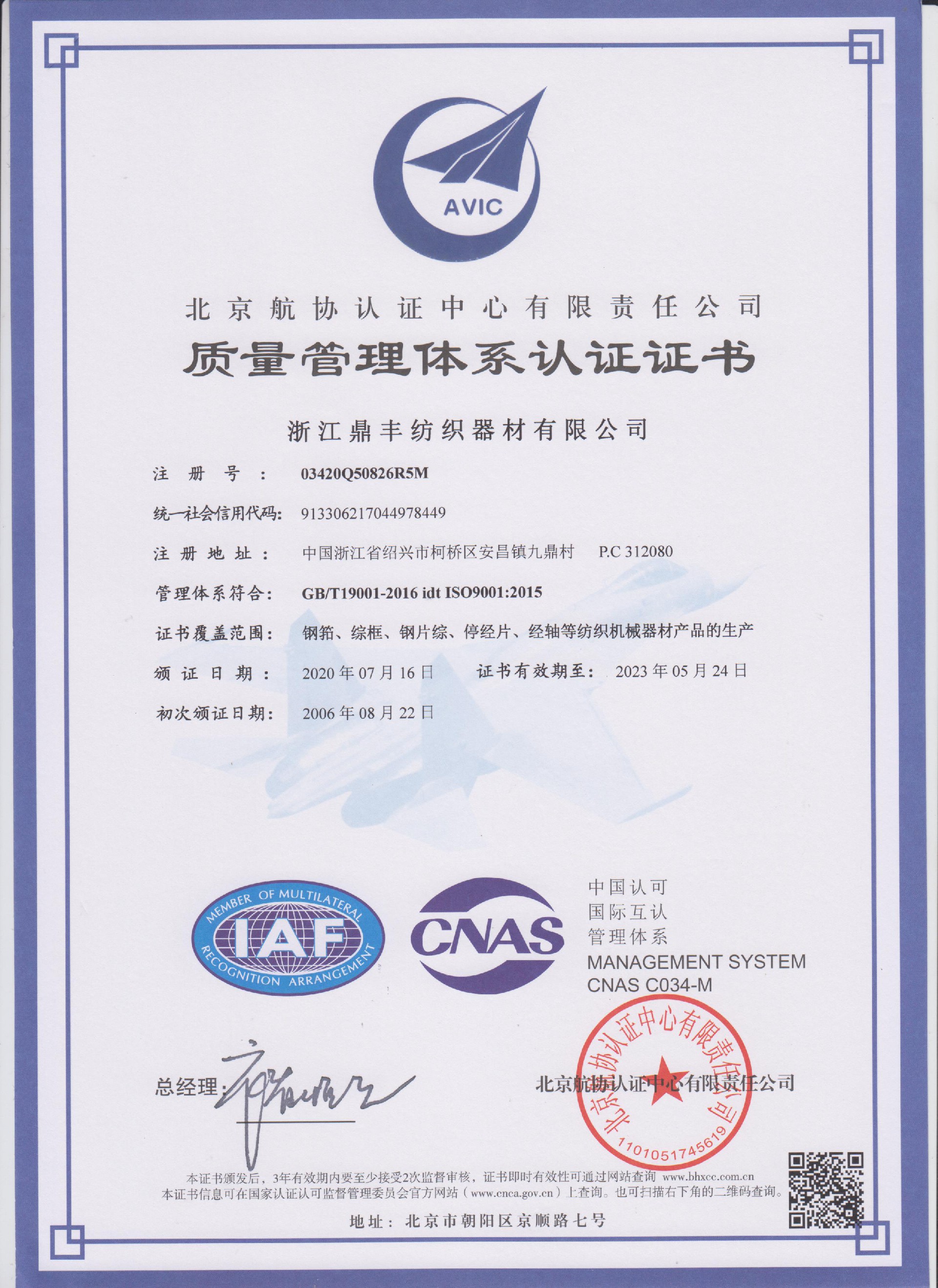 浙江鼎豐紡織器材有限公司始建于1986年,是一家專業(yè)生產各類無梭織機用鋼筘:噴氣筘、噴水筘、劍桿筘、其他類型鋼筘;鋁合金綜框、鋼片綜、停經片、經軸、織軸、卷布輥等產品及配件的民營企業(yè)。